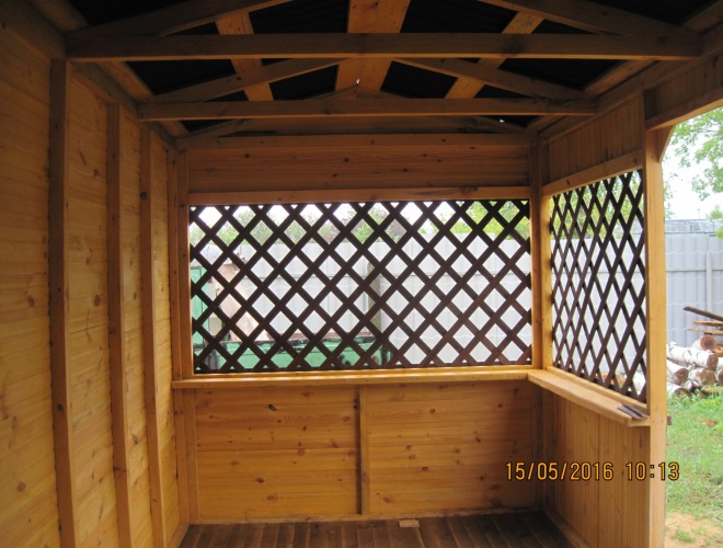 Компактная беседка отлично подойдёт для отдыха на приусадебном участке и украшения вашего сада. Возможны различные варианты по размерам и дизайну.