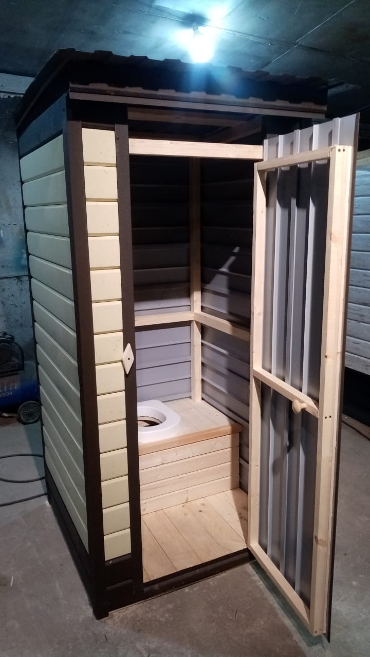 Обычный уличный туалет. Деревянный каркас обшитый метало профилем. Симпатичный, долговечный, не требует дополнительной обработки.